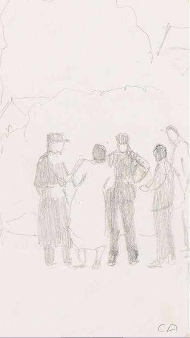 monogrammiert unten rechts, 16×9 cm, Blatt mit Klebespuren.