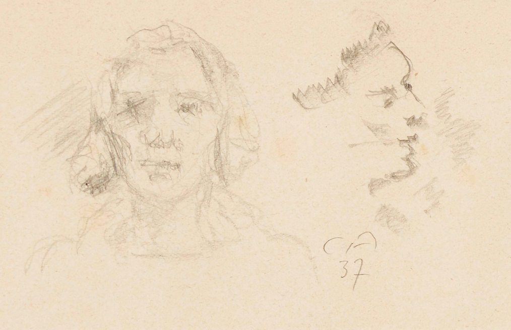 Bleistiftzeichnung von Cuno Amiet „Frauenköpfe“
