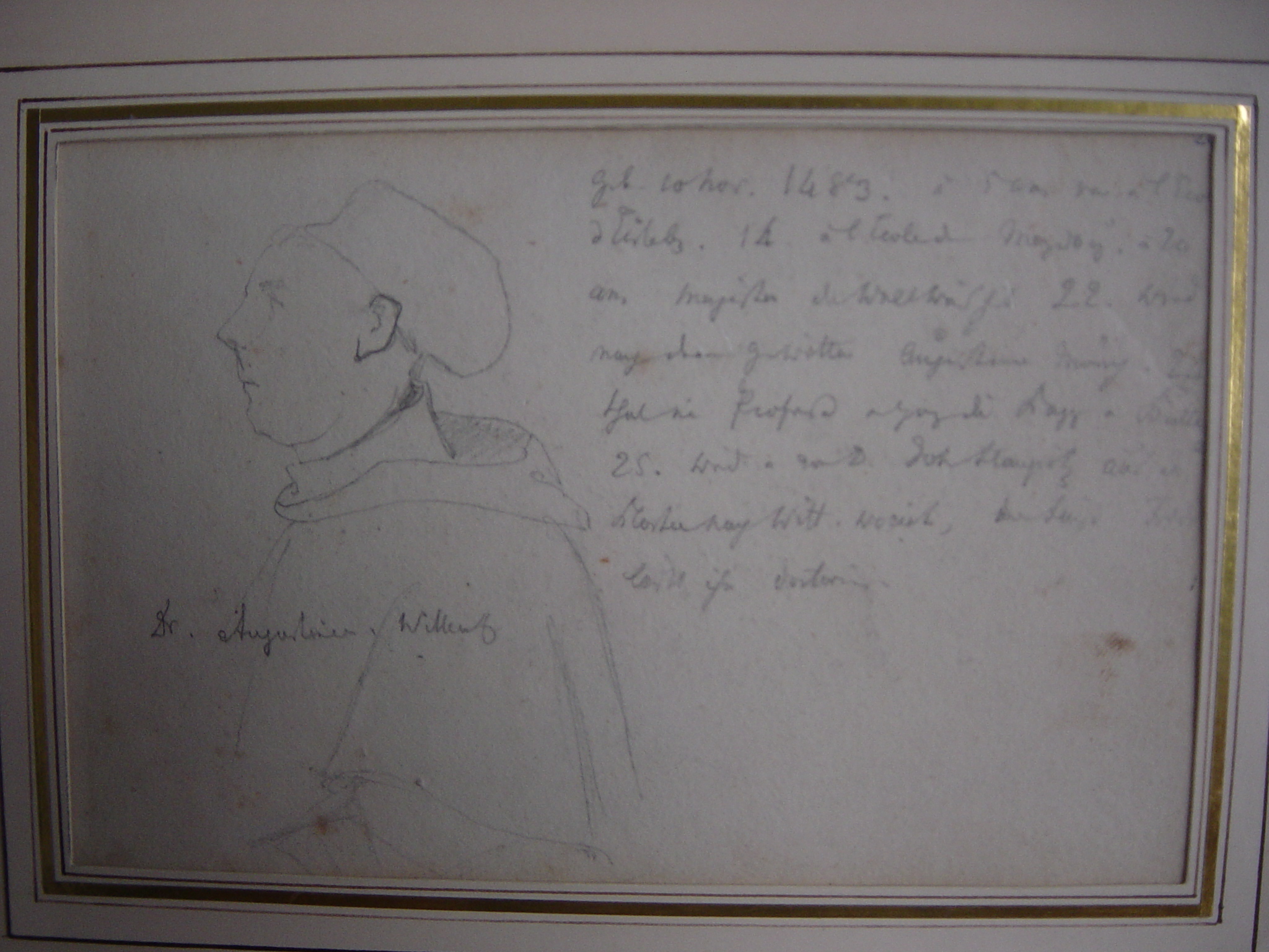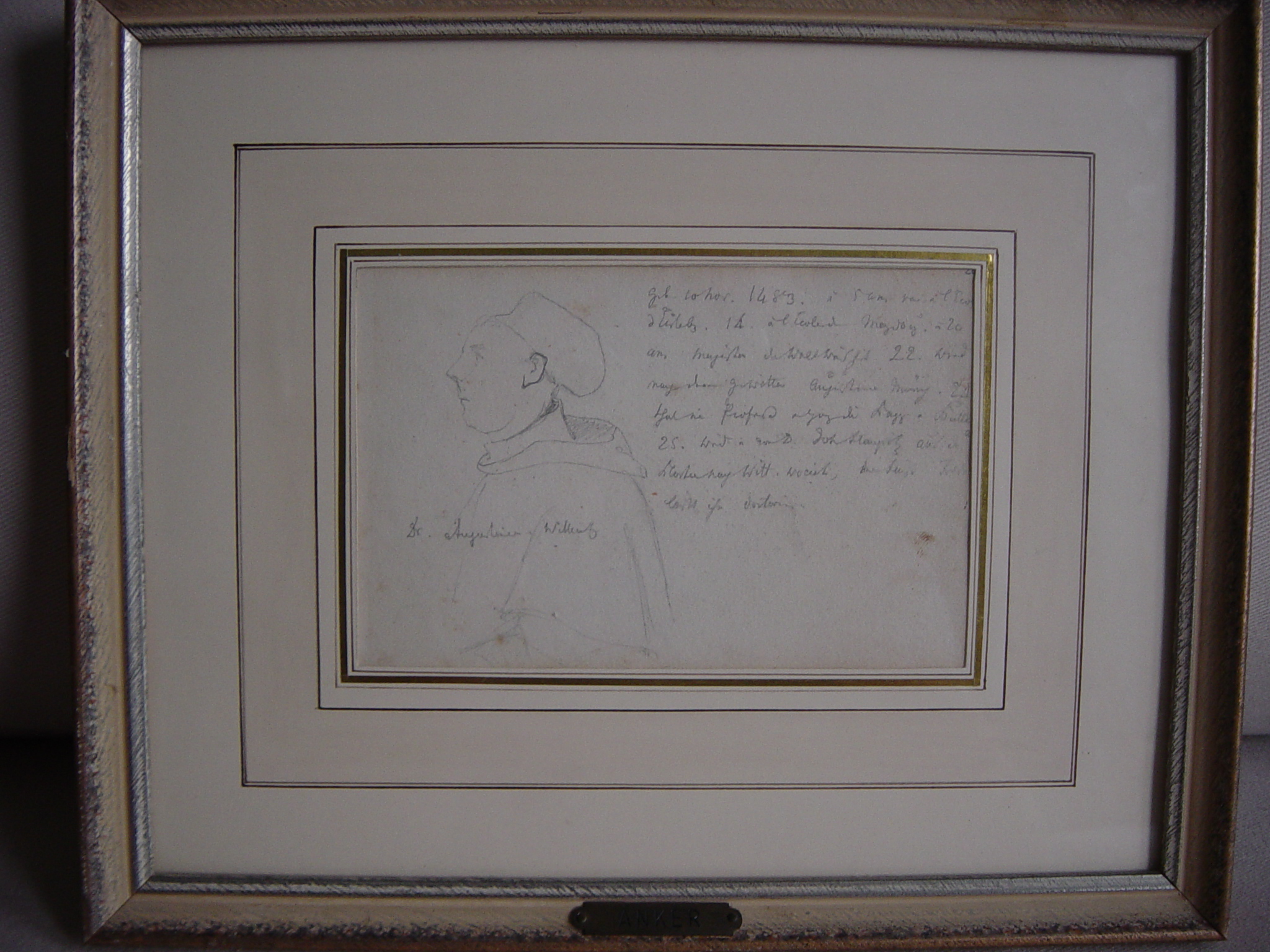 Vorderseite: Abbildung von Dr. Augustinus, Wittenberg (mit handschriftlichen Notizen von Anker zum Lebenslauf)