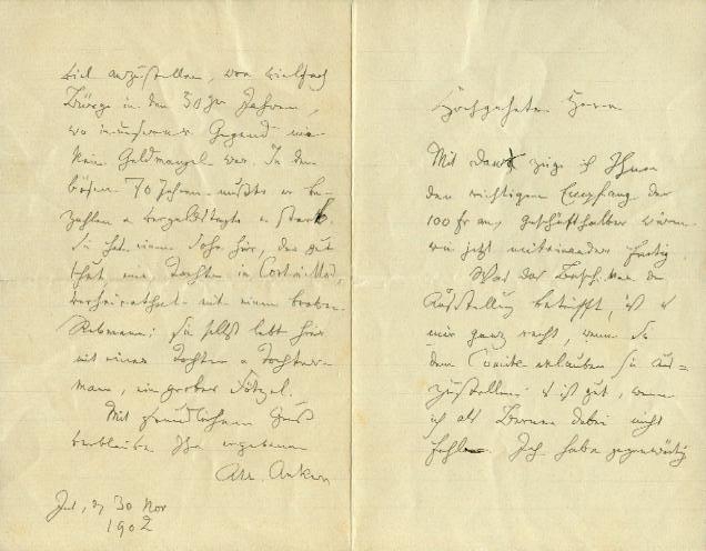 vierseitiger handschriftlicher Brief von Albert Anker von 1902.