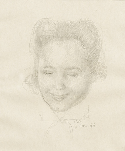 Kopfbildnis einer jungen Frau (Getrude Séchaud). Monogrammmiert und datiert 17. Januar (19)44 unten rechts. 20.5×17.5 cm,