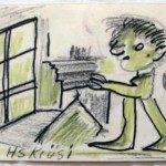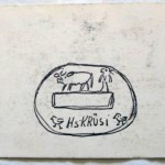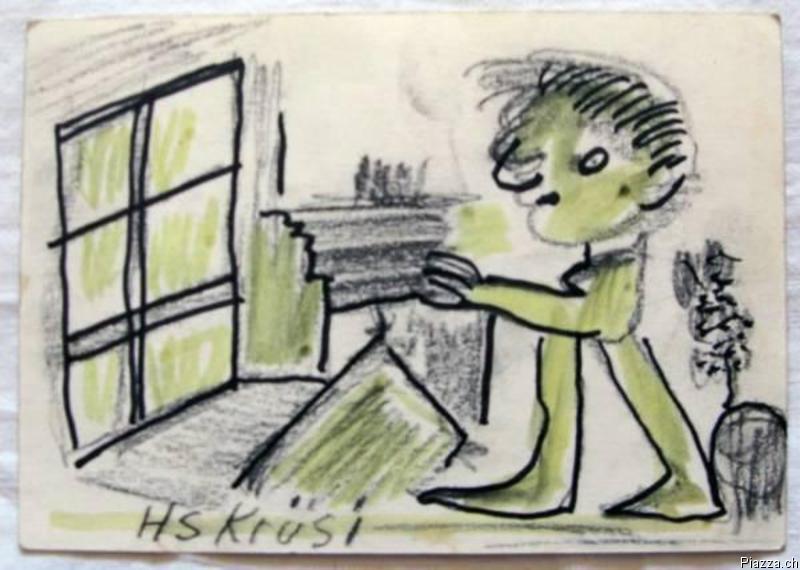 Postkartengrosses Bild (Handkolorierte Filz- und Farbstiftzeichnung des Artbrut Malers und Blumenverkäufers Hans Krüsi (1920-1995). sehr typische Filzstiftzeichnung