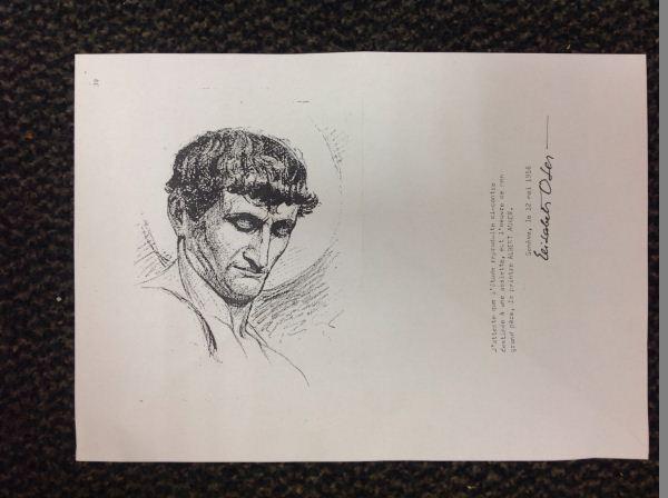 Original Bleistiftzeichnung von Albert Anker „Heilliger Mann“ mit Kopie der Echtheitsbestätigung von Elisabeth Oser vom 12. Mai 1956.